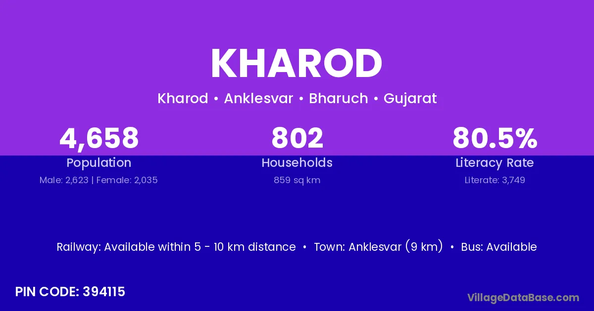 Godhra (35 km) is the nearest town to Kharod village for major economic activities and is located approximately 35 km away.