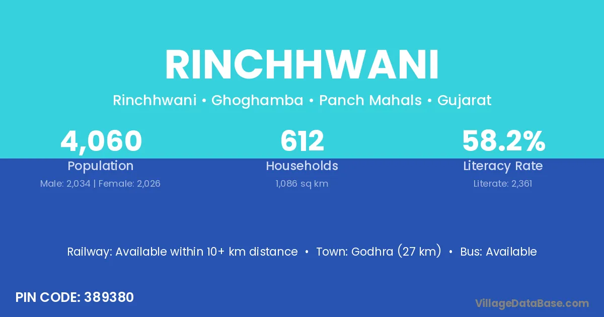 Godhra (27 km) is the nearest town to Rinchhwani village for major economic activities and is located approximately 27 km away.