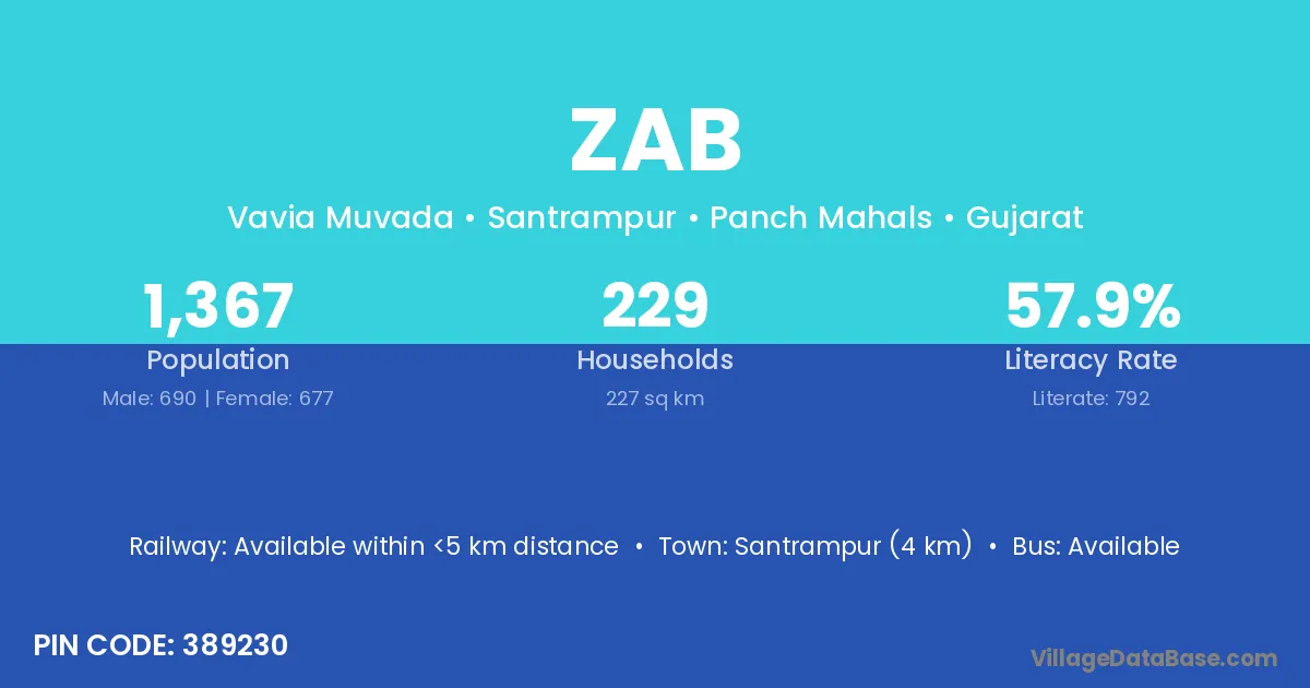 Halol (15 km) is the nearest town to Zab village for major economic activities and is located approximately 15 km away.