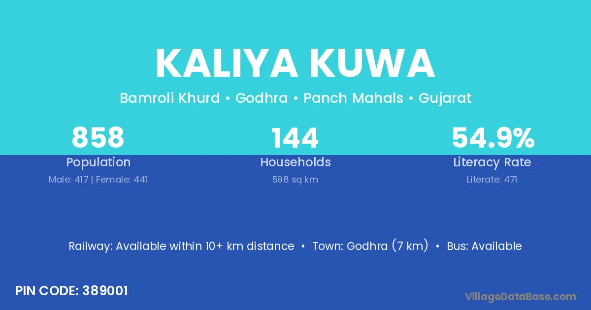 Godhra (7 km) is the nearest town to Kaliya Kuwa village for major economic activities and is located approximately 7 km away.