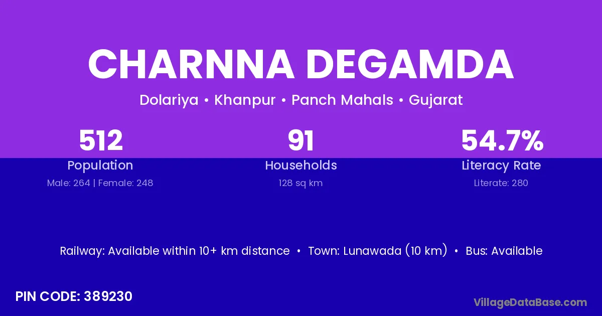 According to Census 2011 information, the village code of Charnna Degamda village is 389230.