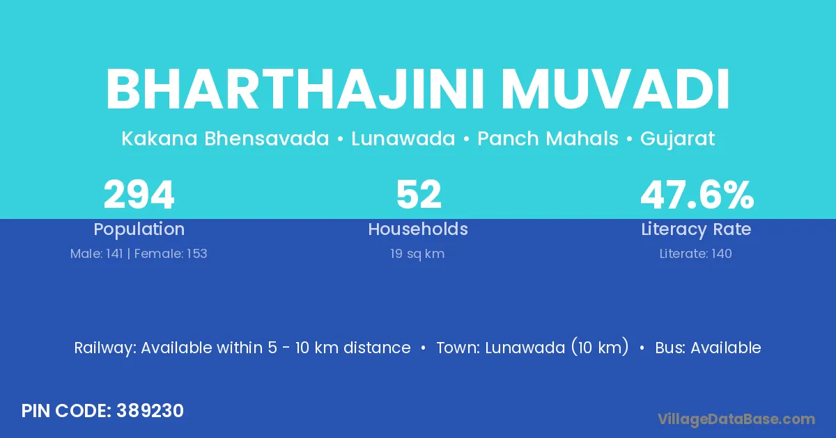 Bharthajini Muvadi village has a total population of 294 people, of which 141 are males and 153 are females.