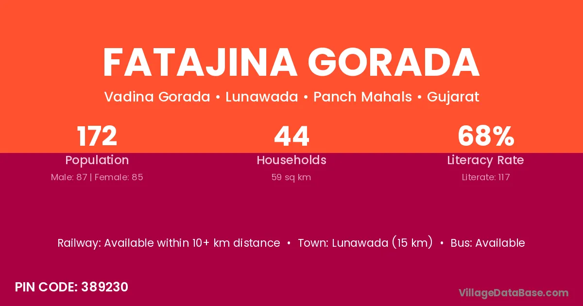 Lunawada (15 km) is the nearest town to Fatajina Gorada village for major economic activities and is located approximately 15 km away.