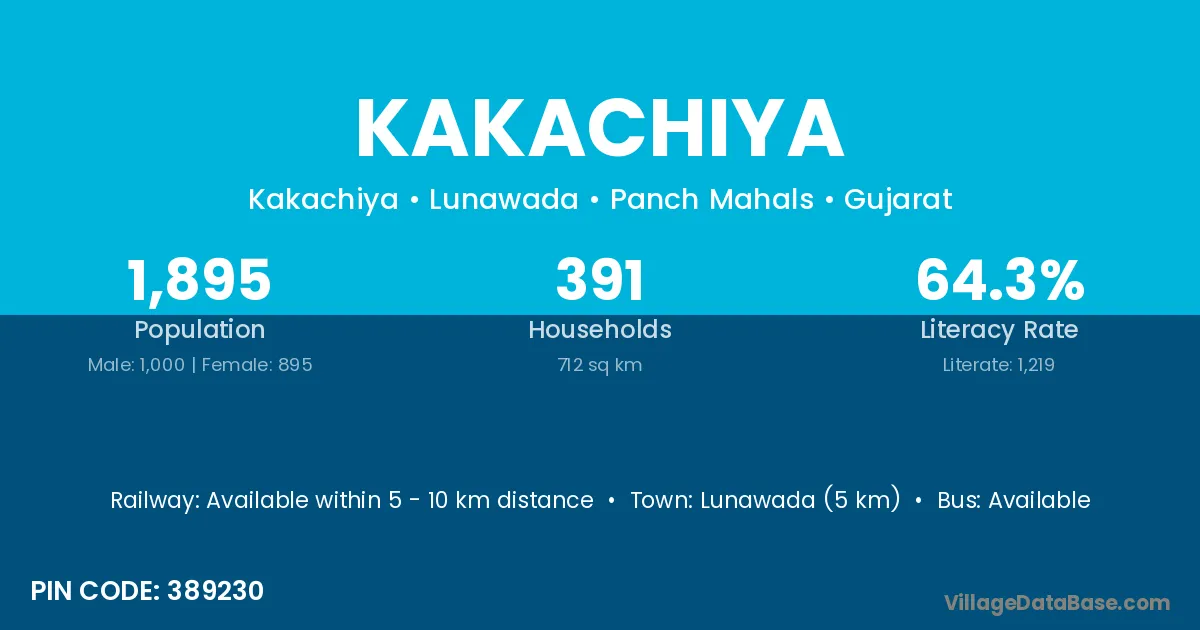 Lunawada (5 km) is the nearest town to Kakachiya village for major economic activities and is located approximately 5 km away.