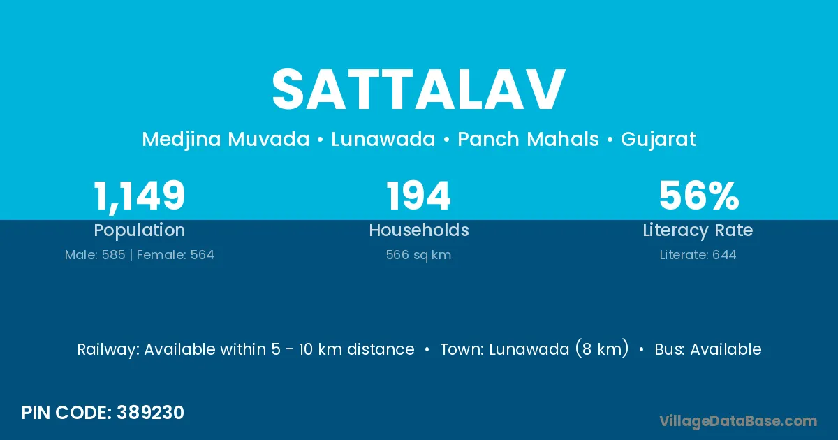 Lunawada (8 km) is the nearest town to Sattalav village for major economic activities and is located approximately 8 km away.