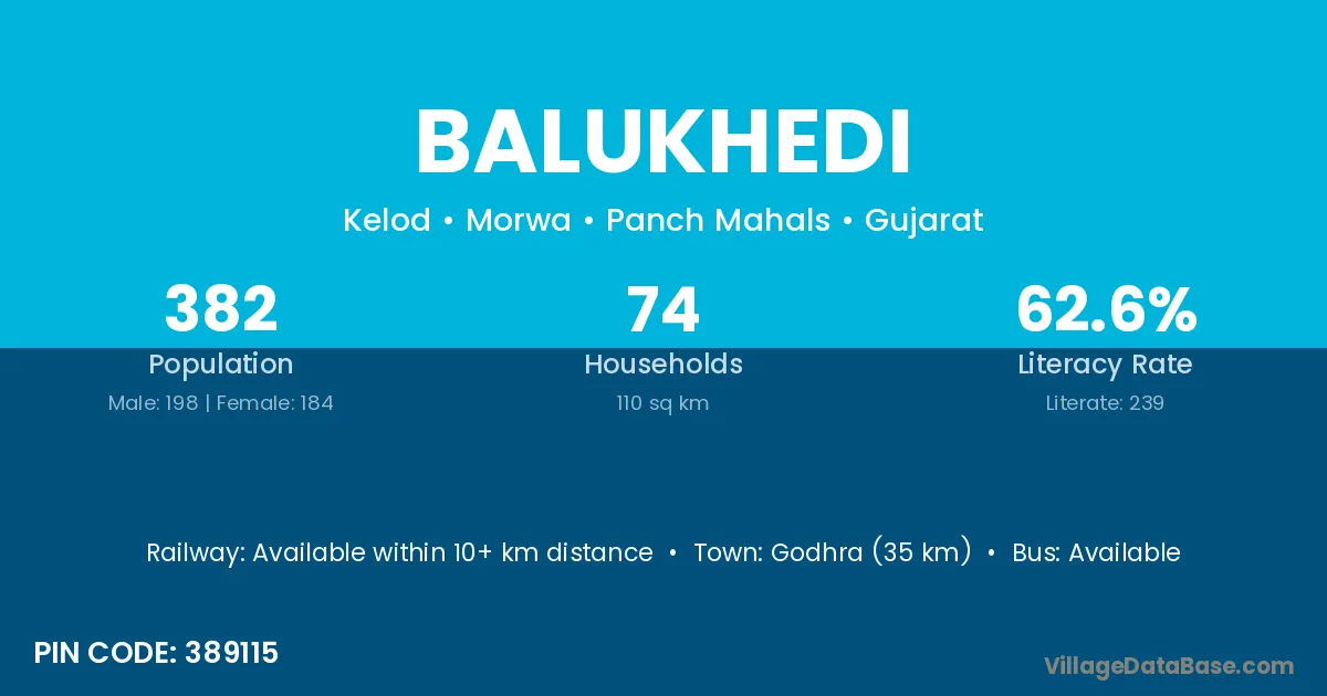 Godhra (35 km) is the nearest town to Balukhedi village for major economic activities and is located approximately 35 km away.
