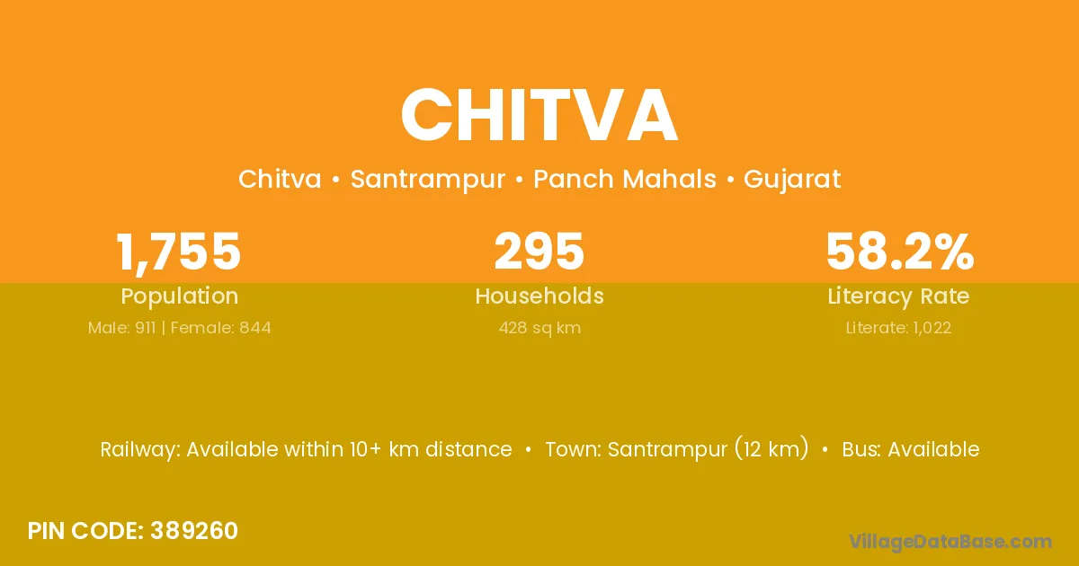 Santrampur (12 km) is the nearest town to Chitva village for major economic activities and is located approximately 12 km away.