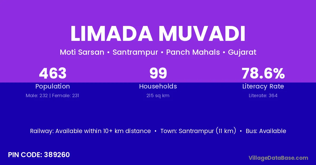 Limada Muvadi village has a total population of 463 people, of which 232 are males and 231 are females.