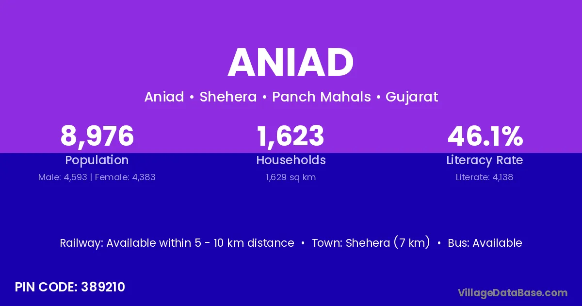 Shehera (7 km) is the nearest town to Aniad village for major economic activities and is located approximately 7 km away.