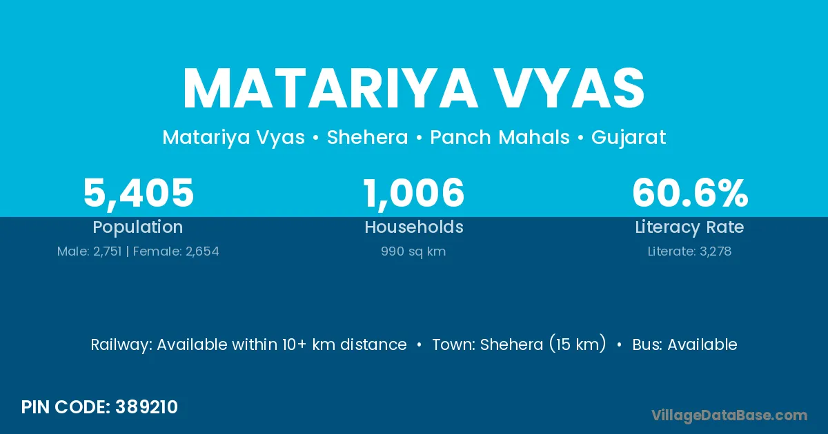 According to Census 2011 information, the village code of Matariya Vyas village is 389210.