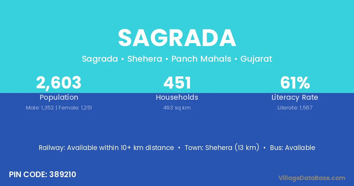Shehera (13 km) is the nearest town to Sagrada village for major economic activities and is located approximately 13 km away.