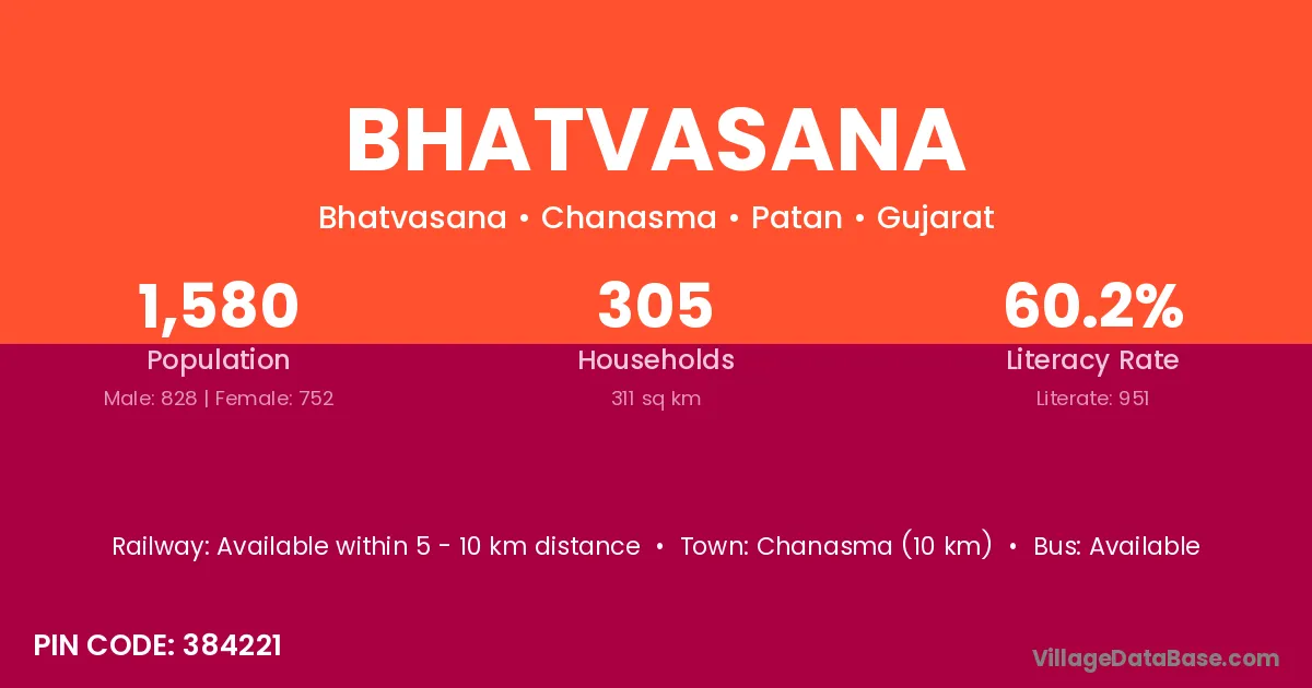 Bhatvasana village has a total population of 1,580 people, of which 828 are males and 752 are females.