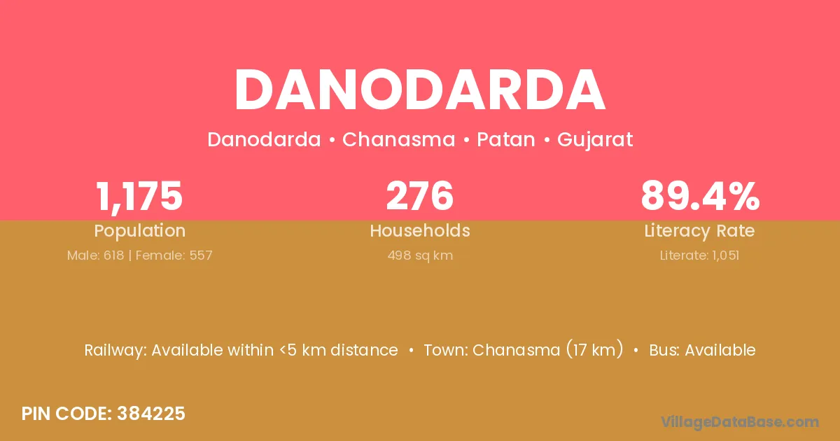 Chanasma (17 km) is the nearest town to Danodarda village for major economic activities and is located approximately 17 km away.