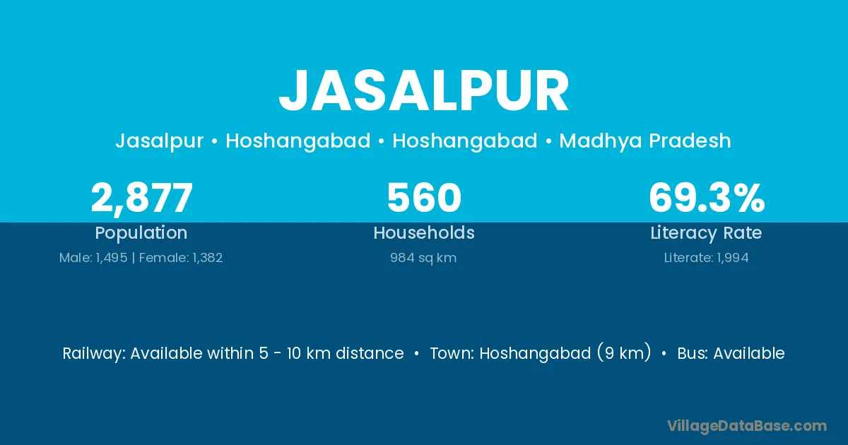 The literacy rate of Jasalpur village is 71.17%. Male literacy stands at 79.34% and female literacy at 62.41%.