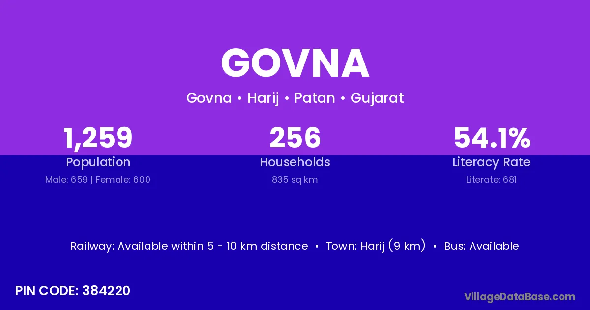 Harij (9 km) is the nearest town to Govna village for major economic activities and is located approximately 9 km away.
