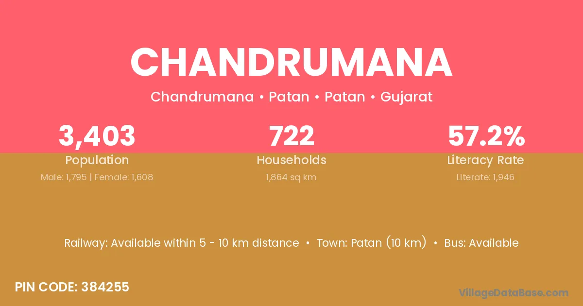 According to Census 2011 information, the village code of Chandrumana village is 384255.