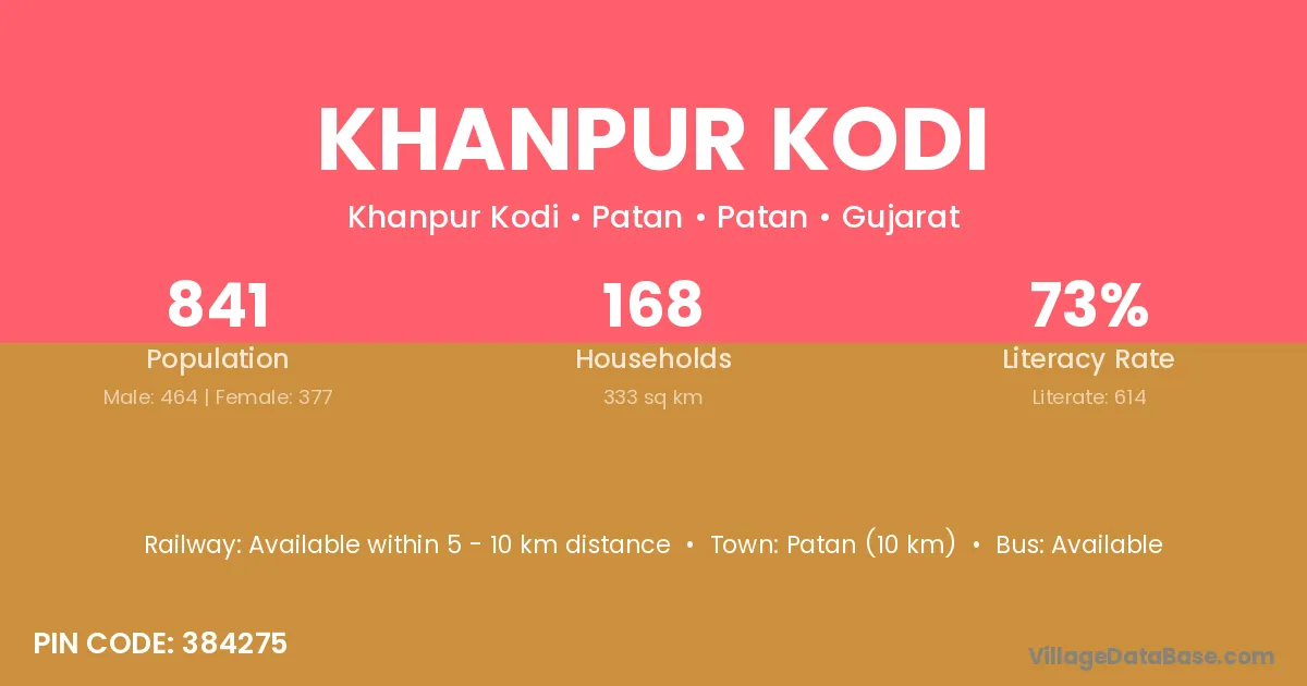 Patan (10 km) is the nearest town to Khanpur Kodi village for major economic activities and is located approximately 10 km away.