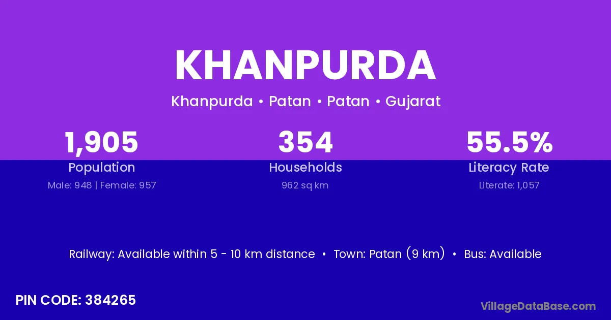 Patan (9 km) is the nearest town to Khanpurda village for major economic activities and is located approximately 9 km away.