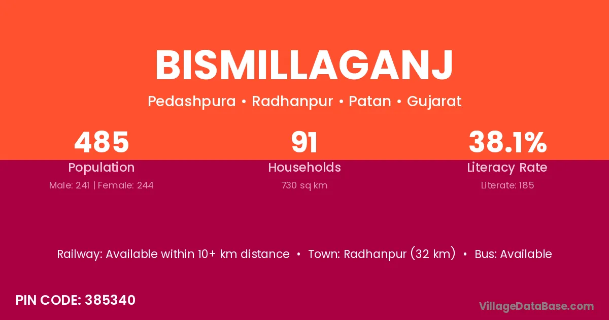 Radhanpur (32 km) is the nearest town to Bismillaganj village for major economic activities and is located approximately 32 km away.