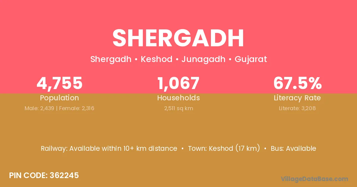 Radhanpur (9 km) is the nearest town to Shergadh village for major economic activities and is located approximately 9 km away.
