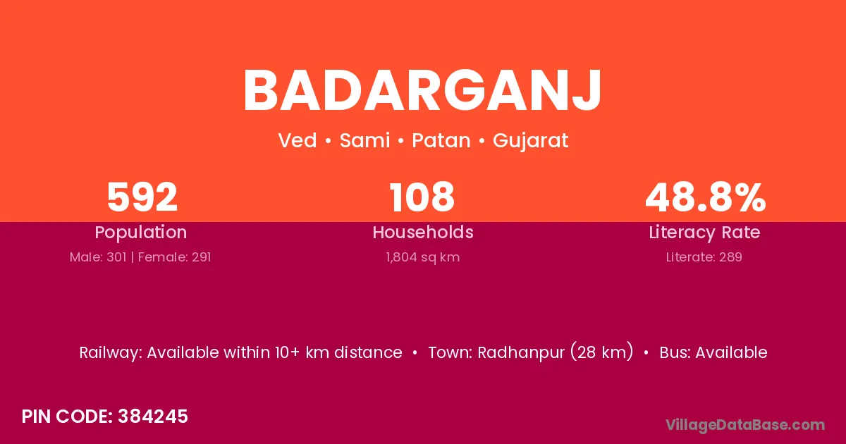 Radhanpur (28 km) is the nearest town to Badarganj village for major economic activities and is located approximately 28 km away.
