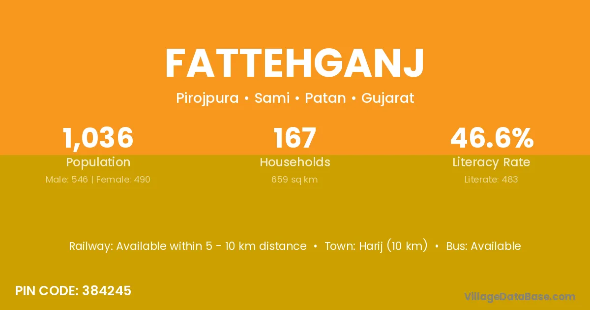 Harij (10 km) is the nearest town to Fattehganj village for major economic activities and is located approximately 10 km away.