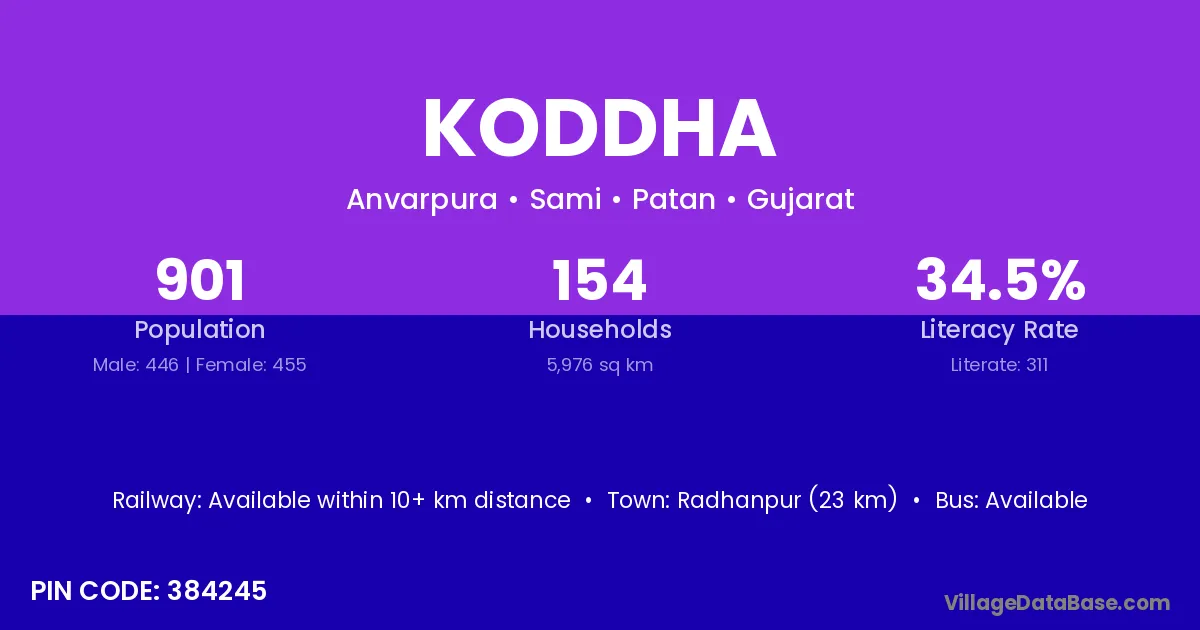 Radhanpur (23 km) is the nearest town to Koddha village for major economic activities and is located approximately 23 km away.