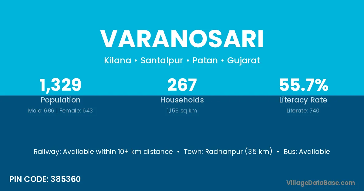 Radhanpur (35 km) is the nearest town to Varanosari village for major economic activities and is located approximately 35 km away.