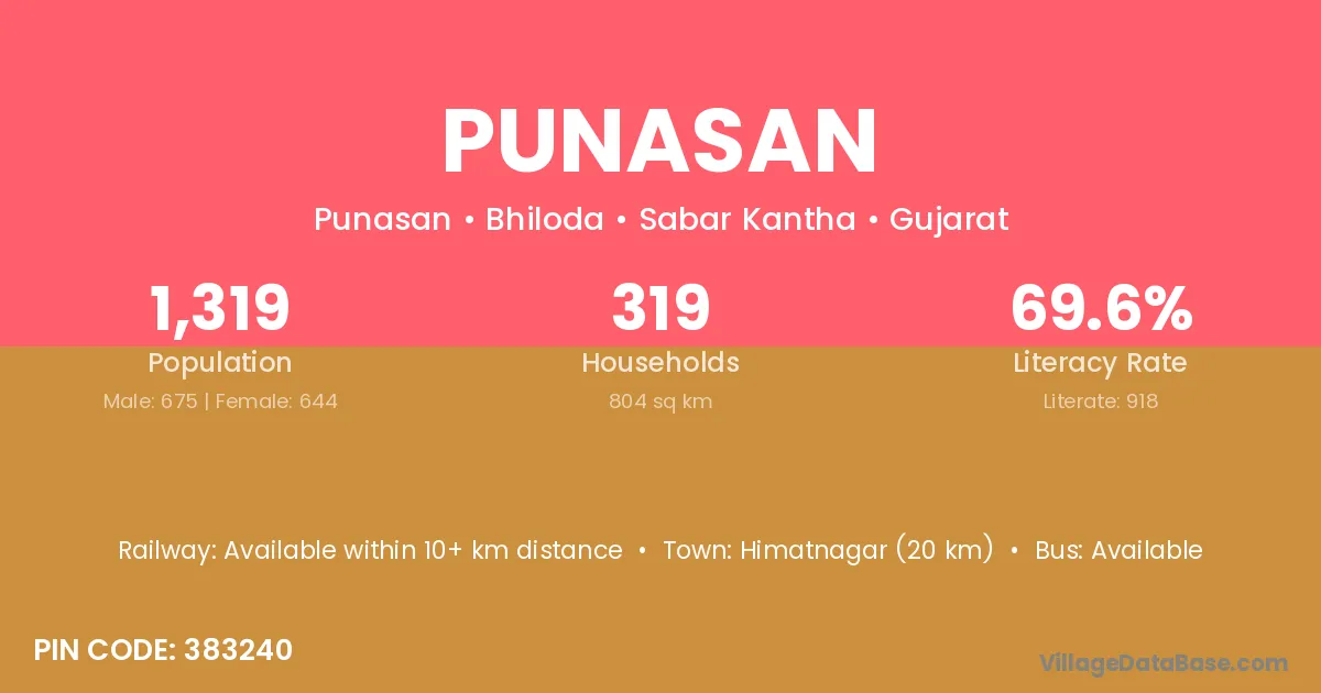 Sidhpur (13 km) is the nearest town to Punasan village for major economic activities and is located approximately 13 km away.