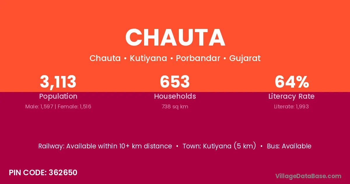Kutiyana (5 km) is the nearest town to Chauta village for major economic activities and is located approximately 5 km away.