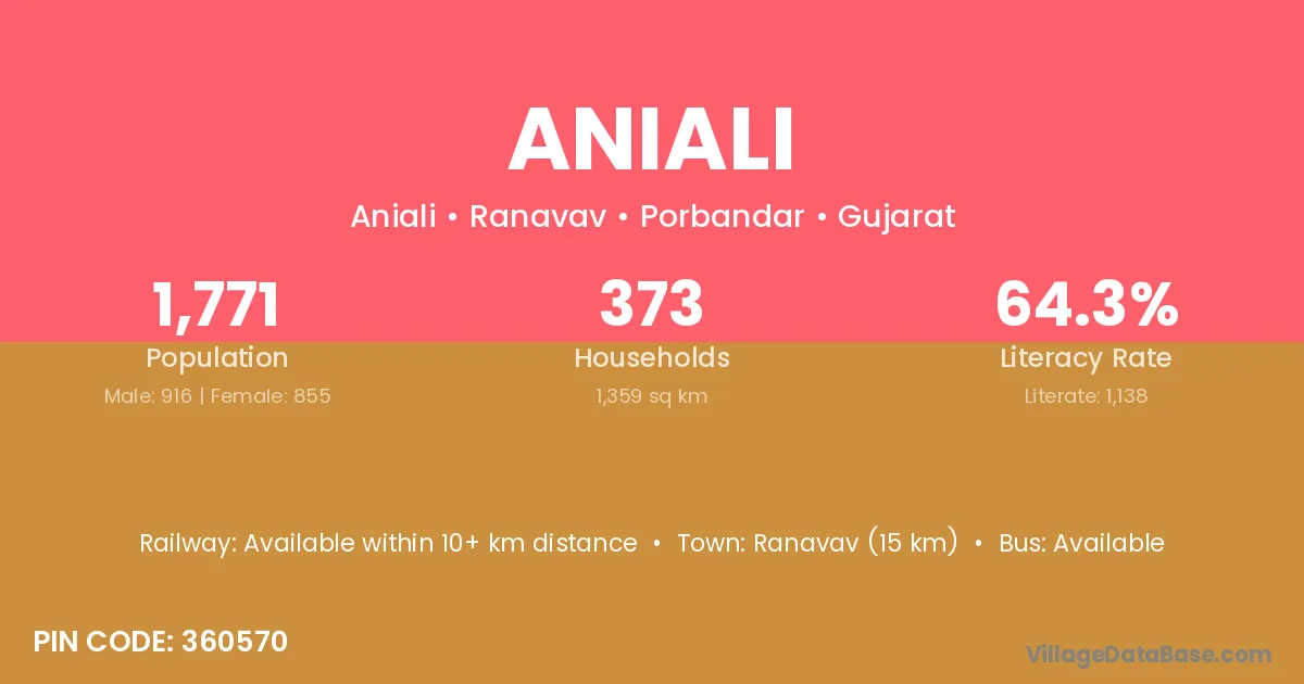 Ranavav (15 km) is the nearest town to Aniali village for major economic activities and is located approximately 15 km away.