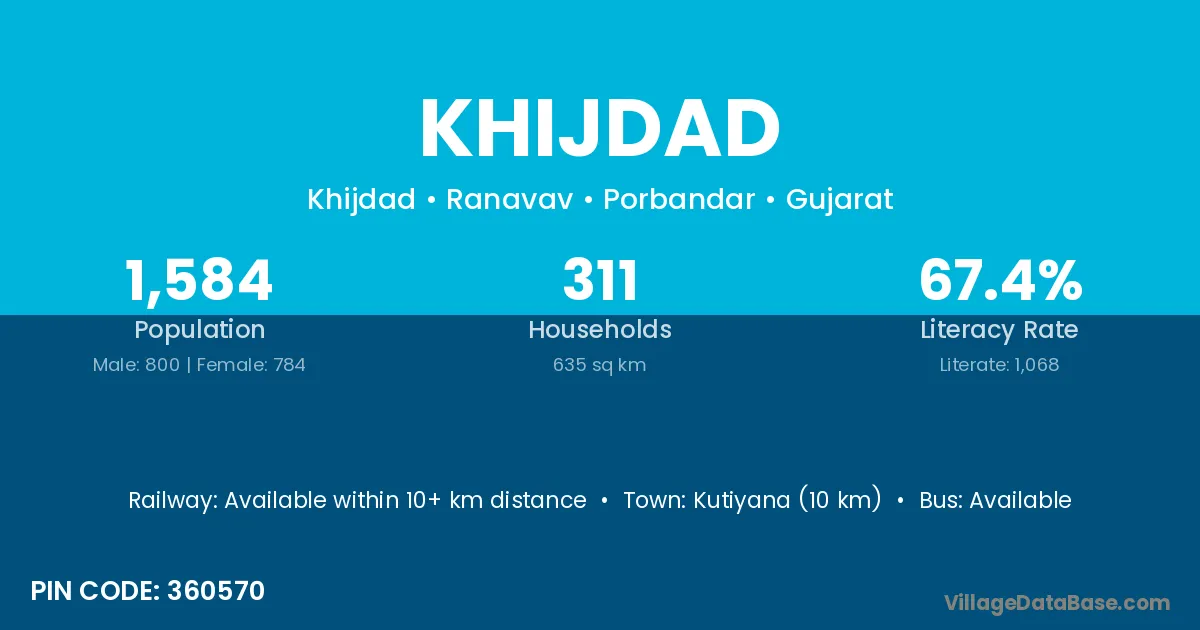 Kutiyana (10 km) is the nearest town to Khijdad village for major economic activities and is located approximately 10 km away.