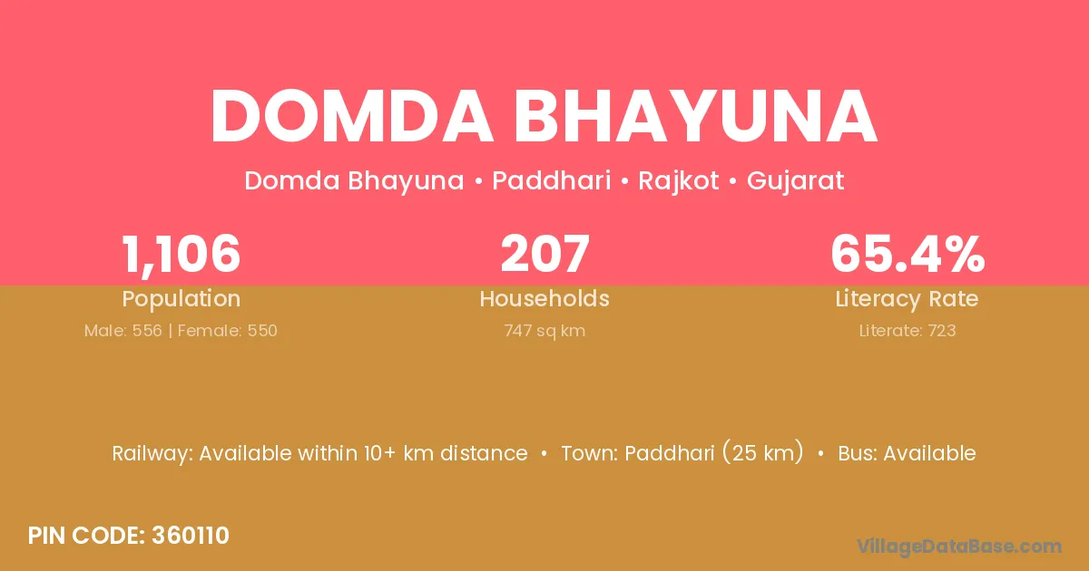 Domda Bhayuna village has a total population of 1,106 people, of which 556 are males and 550 are females.