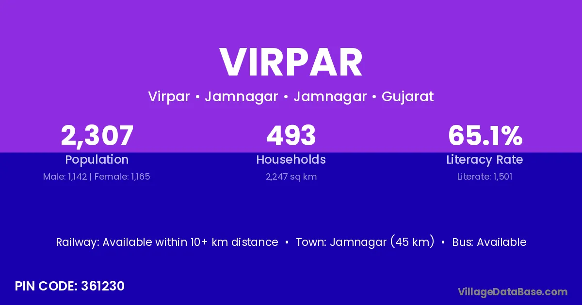 Maliya (21 km) is the nearest town to Virpar village for major economic activities and is located approximately 21 km away.