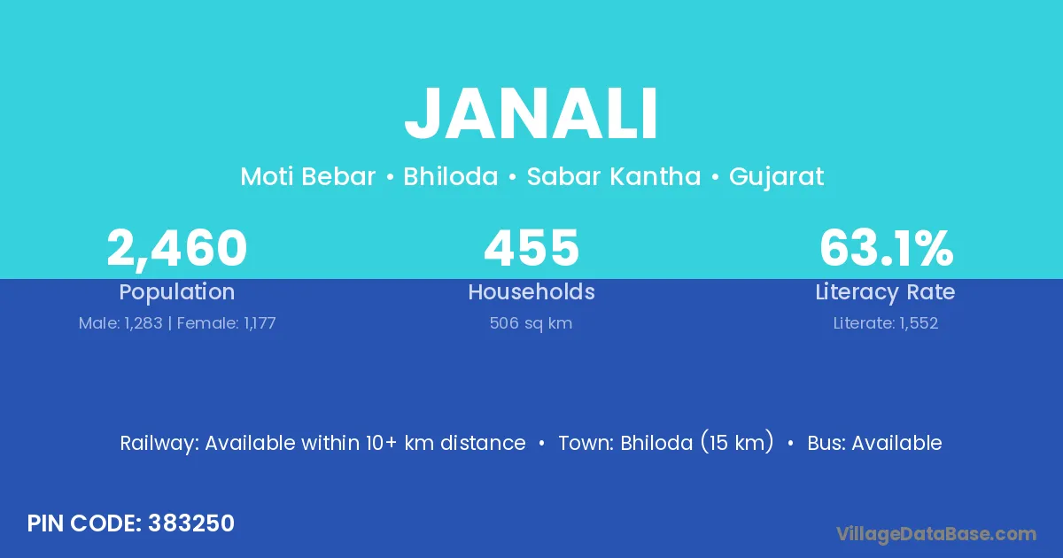 Bhiloda (15 km) is the nearest town to Janali village for major economic activities and is located approximately 15 km away.