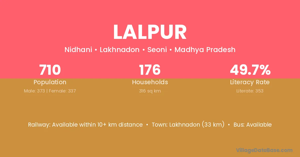 Lalpur village has a total population of 464 people, of which 256 are males and 208 are females.