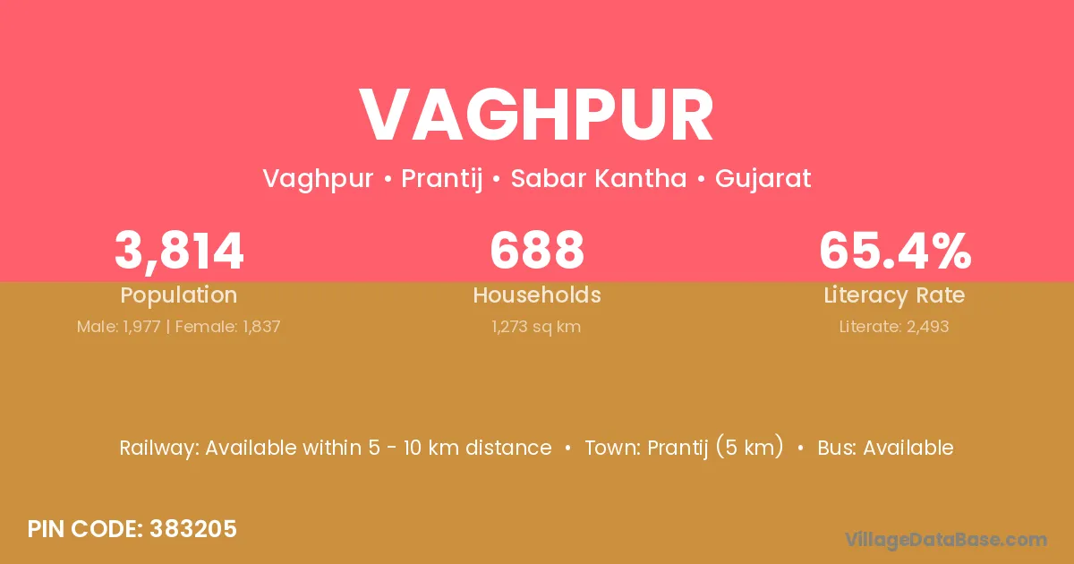 Bhiloda (22 km) is the nearest town to Vaghpur village for major economic activities and is located approximately 22 km away.