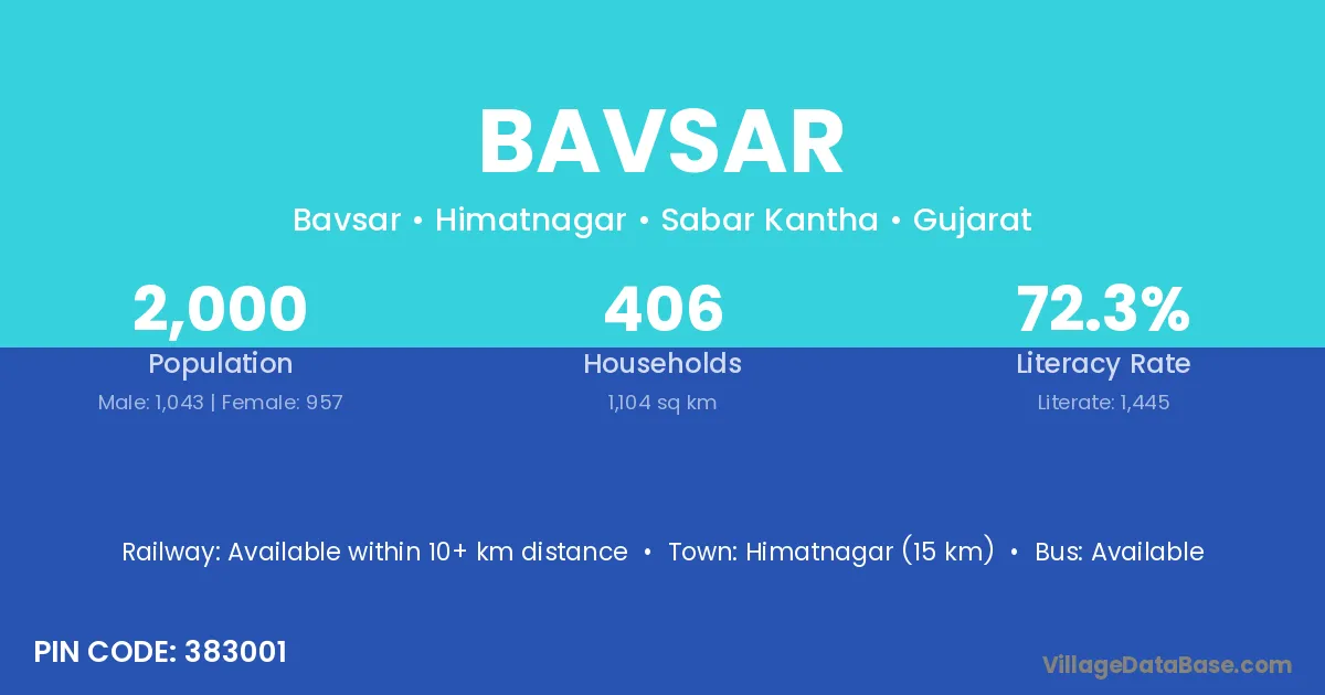 Himatnagar (15 km) is the nearest town to Bavsar village for major economic activities and is located approximately 15 km away.