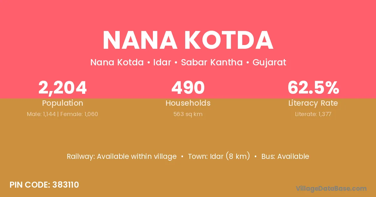 Nana Kotda village has a total population of 2,204 people, of which 1,144 are males and 1,060 are females.