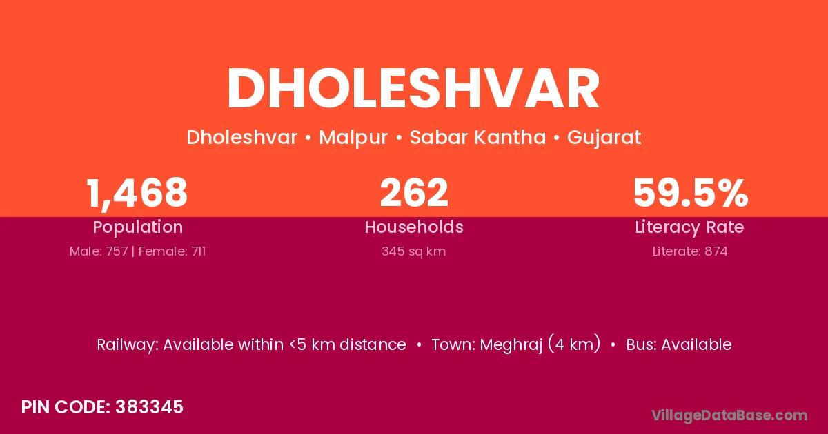 Dholeshvar village has a total population of 1,468 people, of which 757 are males and 711 are females.