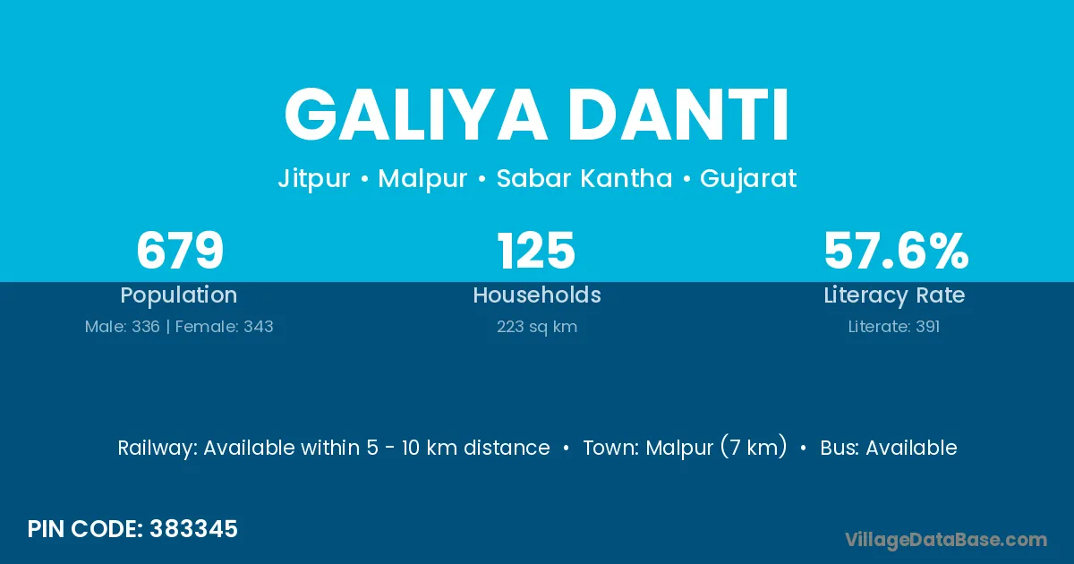 According to Census 2011 information, the village code of Galiya Danti village is 383345.