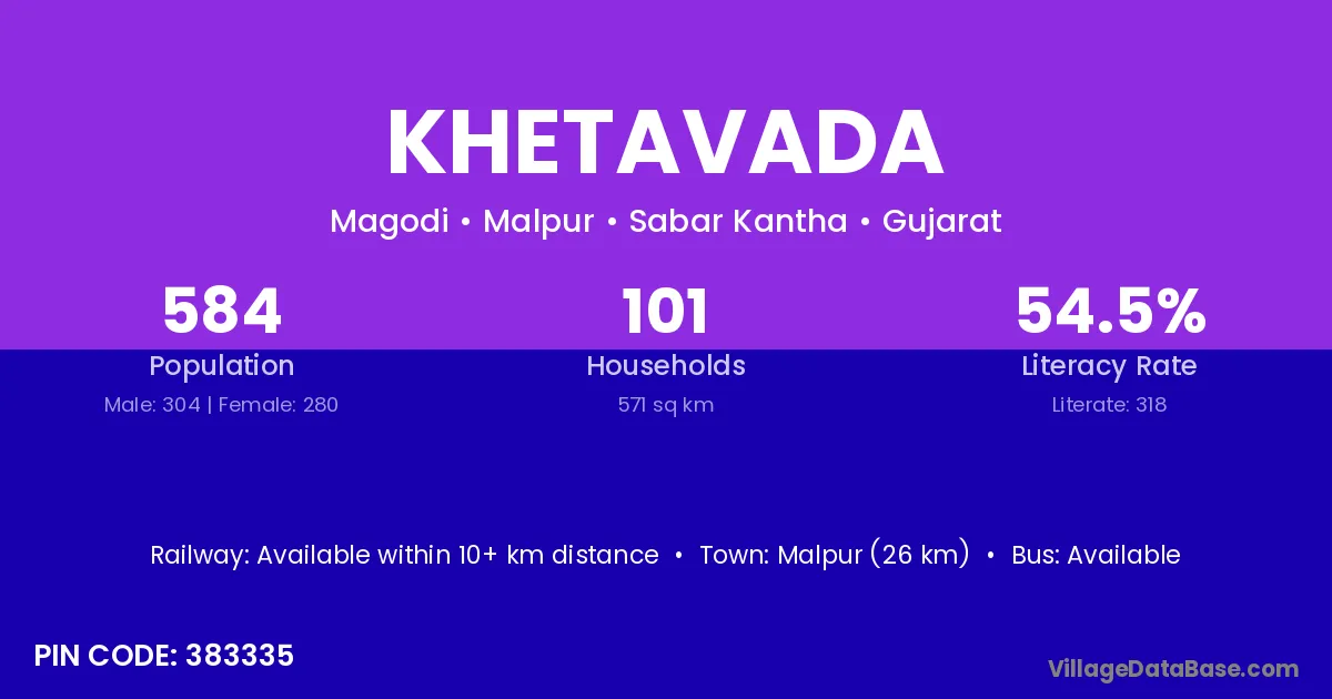 According to Census 2011 information, the village code of Khetavada village is 383335.