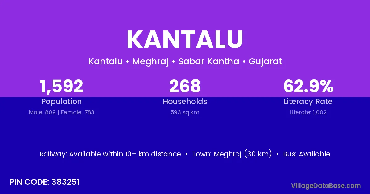 Kantalu village has a total population of 1,592 people, of which 809 are males and 783 are females.