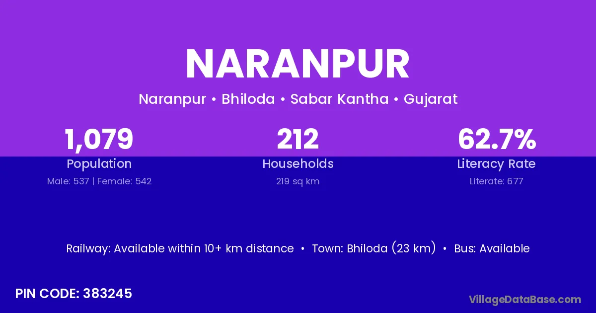 According to Census 2011 information, the village code of Naranpur village is 383251.