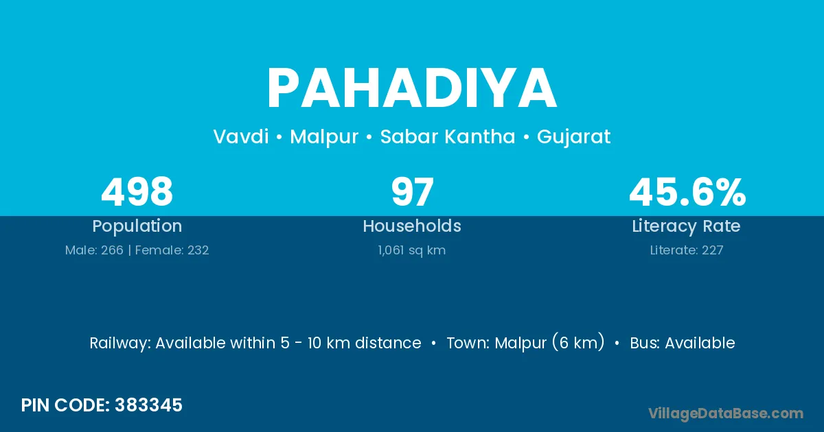 According to Census 2011 information, the village code of Pahadiya village is 383350.