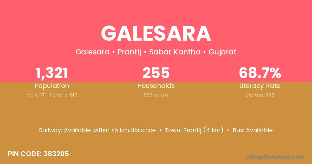 According to Census 2011 information, the village code of Galesara village is 383205.