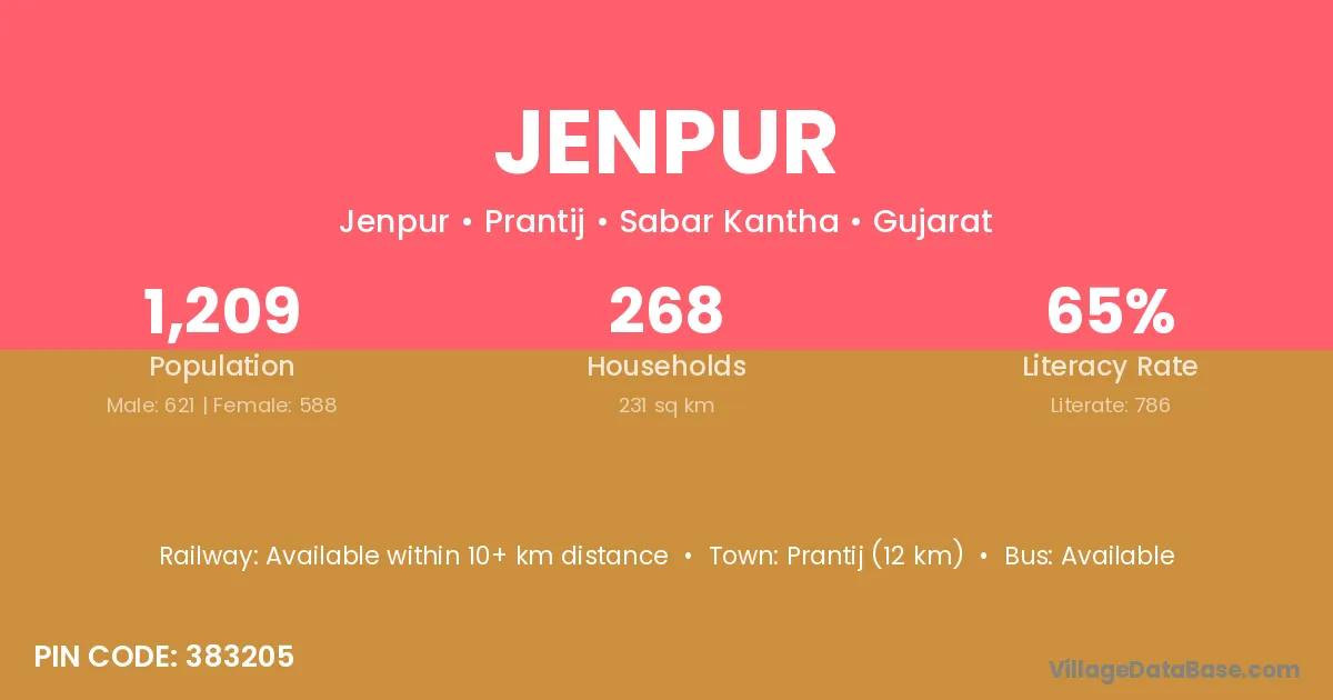According to Census 2011 information, the village code of Jenpur village is 383205.