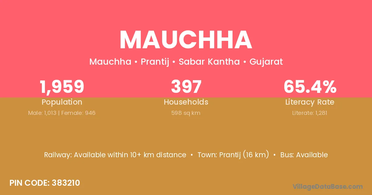 According to Census 2011 information, the village code of Mauchha village is 383210.