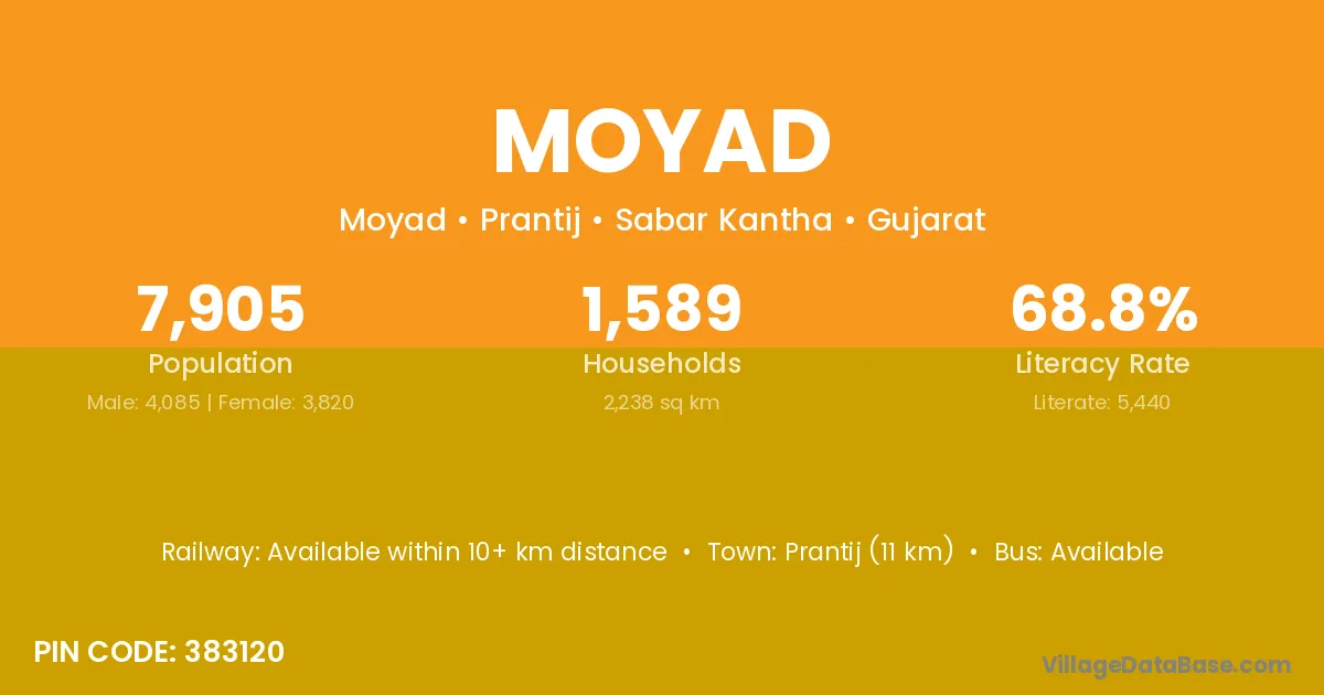 According to Census 2011 information, the village code of Moyad village is 383120.