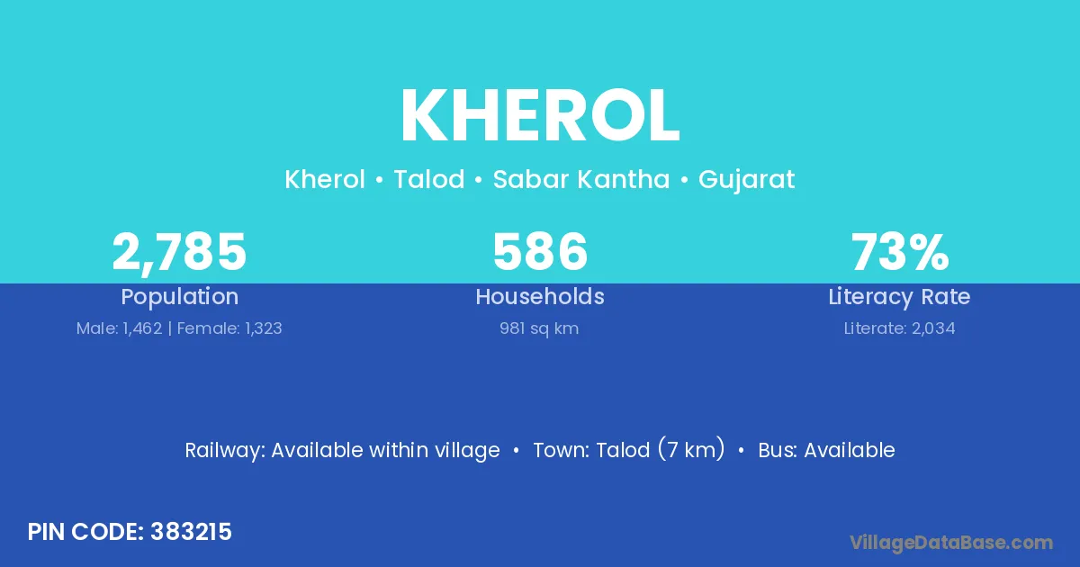 According to Census 2011 information, the village code of Kherol village is 383215.